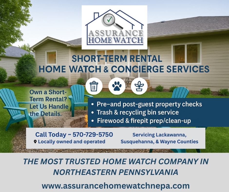 My newest venture, Assurance Home Watch NEPA, is a proud extension of that experience. Founded to serve the unique needs of seasonal homeowners, travelers, and absentee property owners in Northeastern Pennsylvania, Assurance Home Watch offers trusted, discreet, and professional home watch services that protect clients’ most valuable assets while they’re away.
